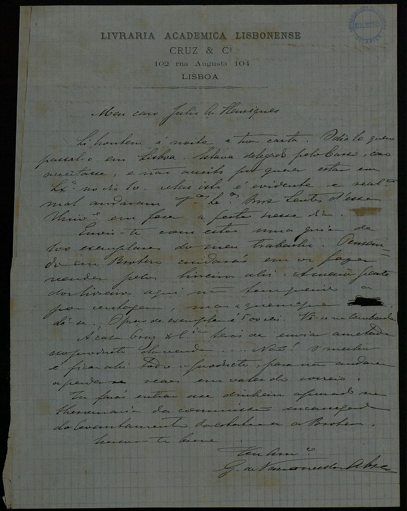 Abreu, G. de Vasconcelos, 1842-1907 (correspondente)