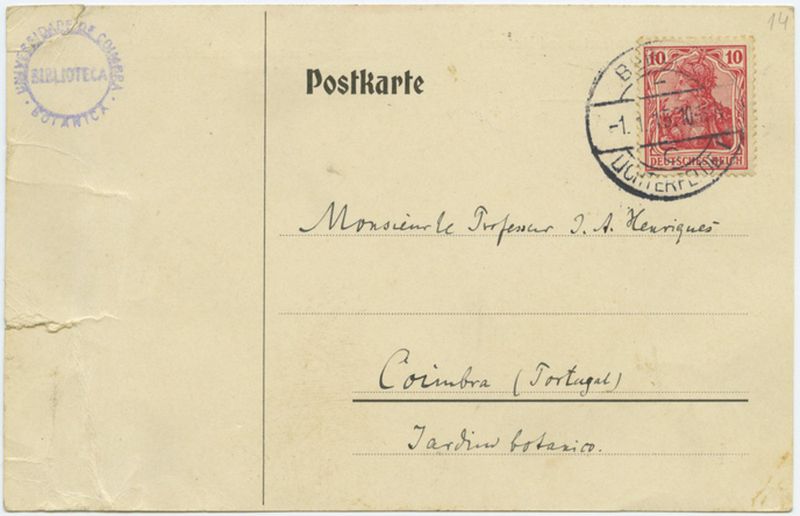 Postkarte, 1915 jan. 1, Dahlem, à Monsieur le professeur J. A. Henriques, Coimbra
