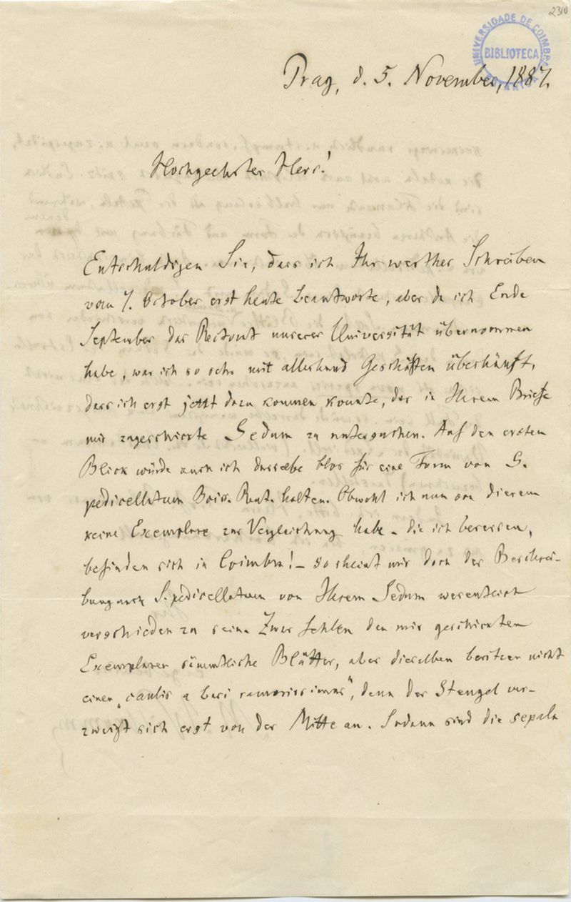 [Brief], 1887 nov. 5, Prag, [Júlio Henriques, Coimbra]