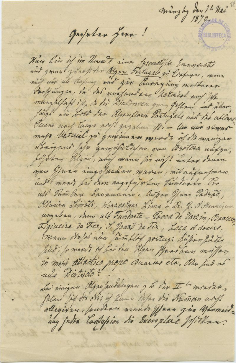 [Brief], 1879 Mai 14, Würzburg, [an] Herr[n Adolfo F. Möller, Coimbra]
