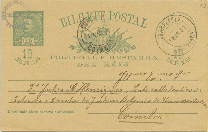 Bilhete Postal, 1901 Mar. 3, S. Fiel, a Dr. Júlio A. Henriques, Coimbra