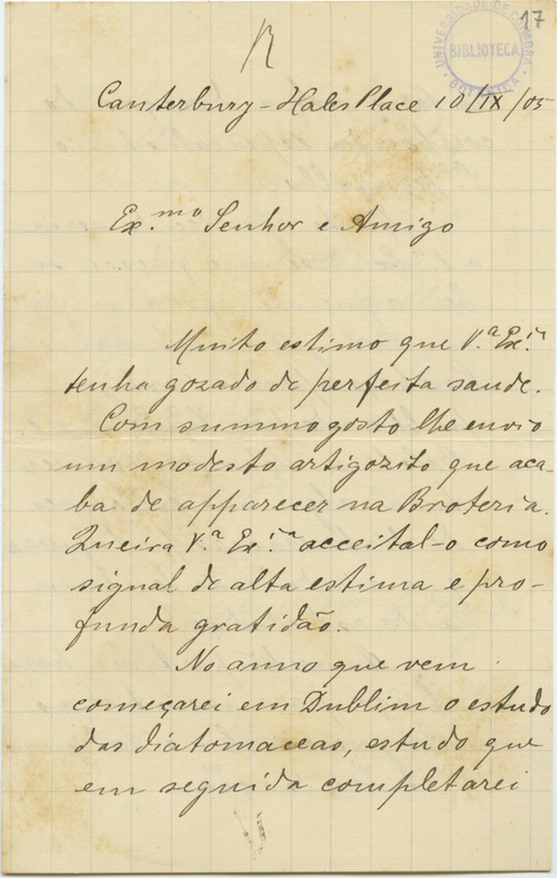 [Carta], 1905 Set. 10, Hales Place, [a Júlio Henriques, Coimbra]