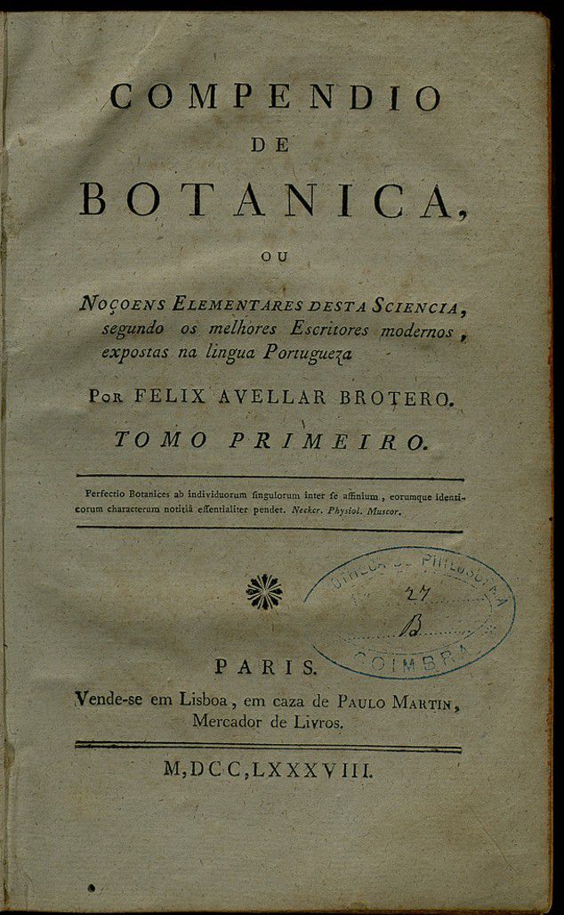 Compendio de Botanica, ou Noçoens Elementares Desta Sciencia, segundo os melhores Escritores modernos, expostas na lingua Portugueza