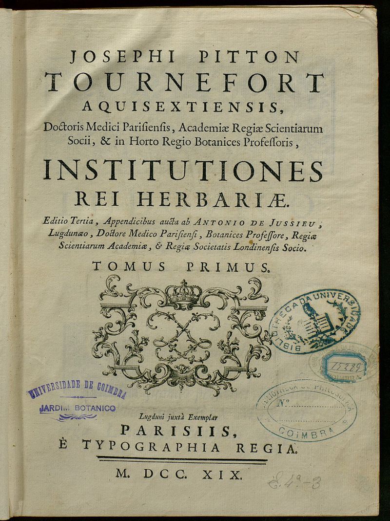 Editio tertia, appendicibus aucta ab Antonio de Jussieu..