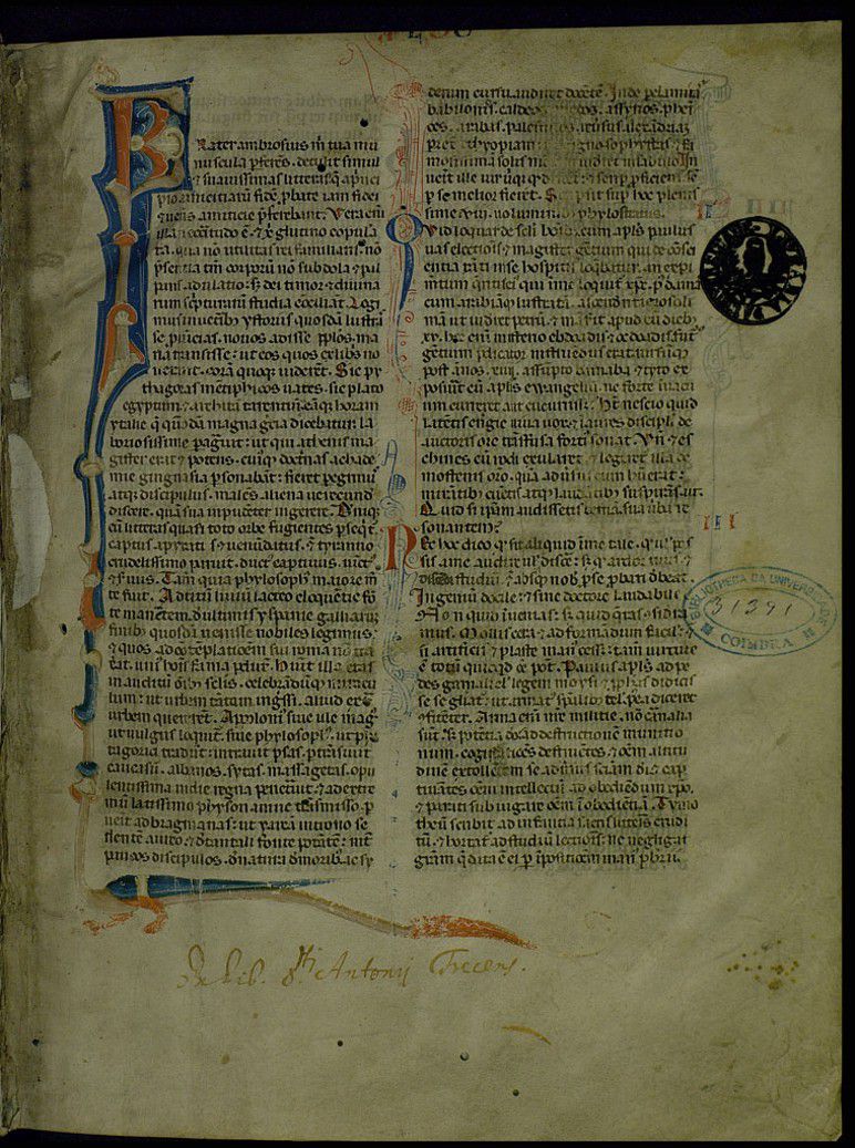 Referenciado em: Saul Gomes, "Manuscritos medievais iluminados e fragmentos", in Tesouros da Biblioteca Geral da Universidade..., Coimbra, 2011, p.48