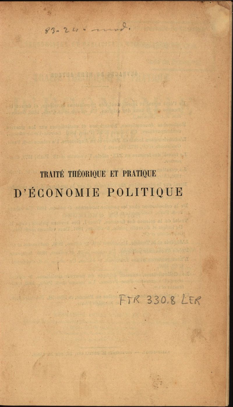 Paris : Librairie Guillaumin et Cie, Éditeurs de la Collection des principaux Economistes, du Journal des Économistes, du Dictionnaire de l'Économie politique, du Dictionnaire du Commerce et de la Navigation, etc., 1896