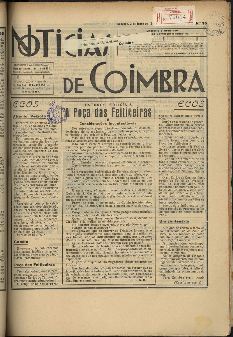 Notícias de Coimbra : semanário noticioso, literário e de crítica