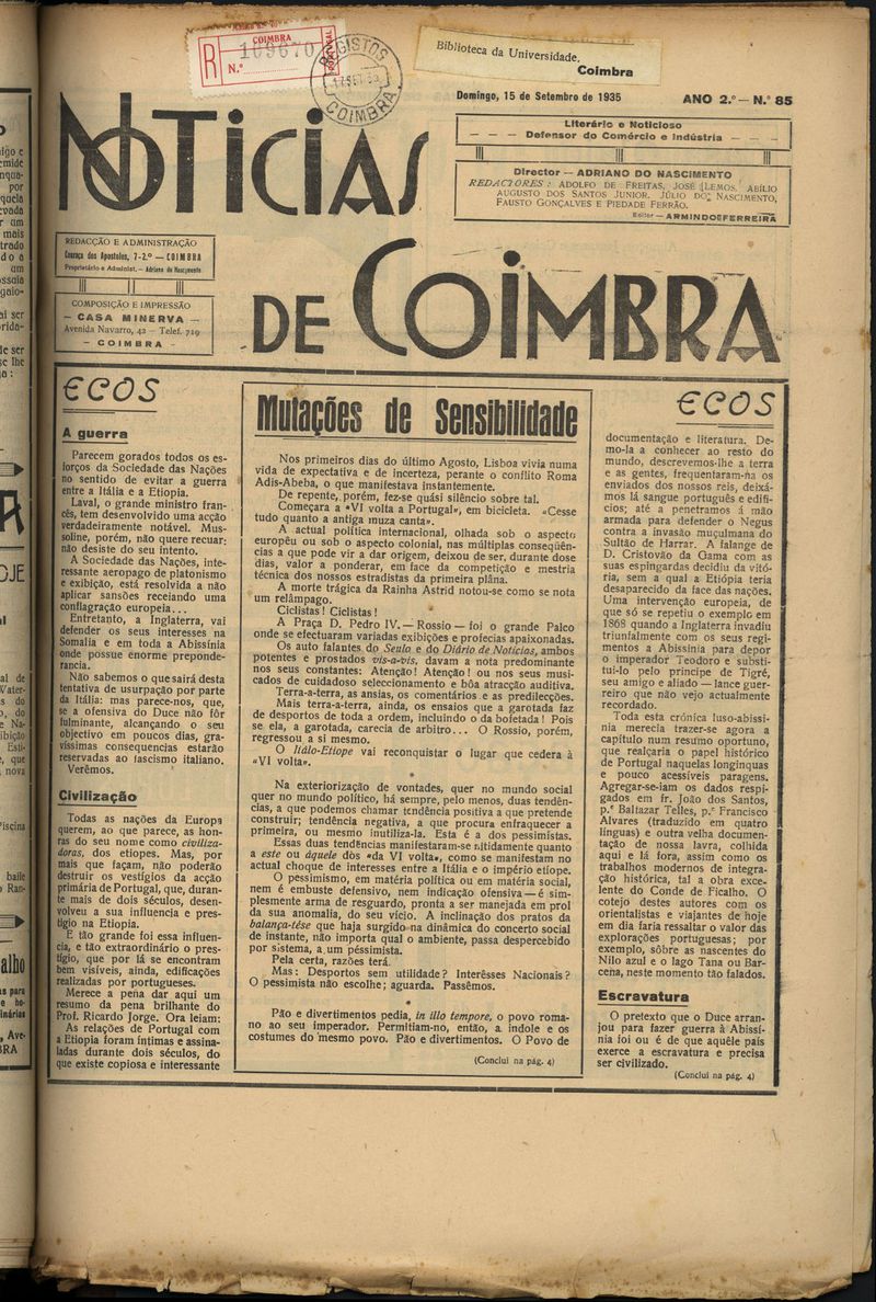Notícias de Coimbra : semanário noticioso, literário e de crítica
