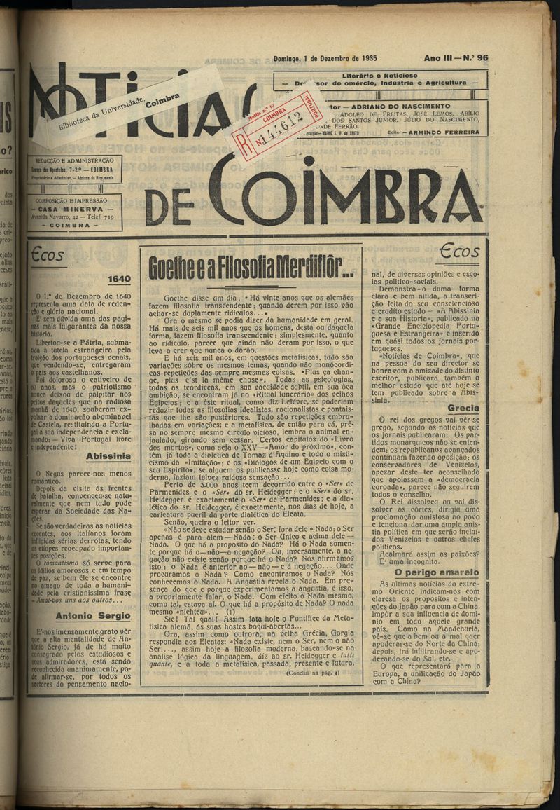 Notícias de Coimbra : semanário noticioso, literário e de crítica