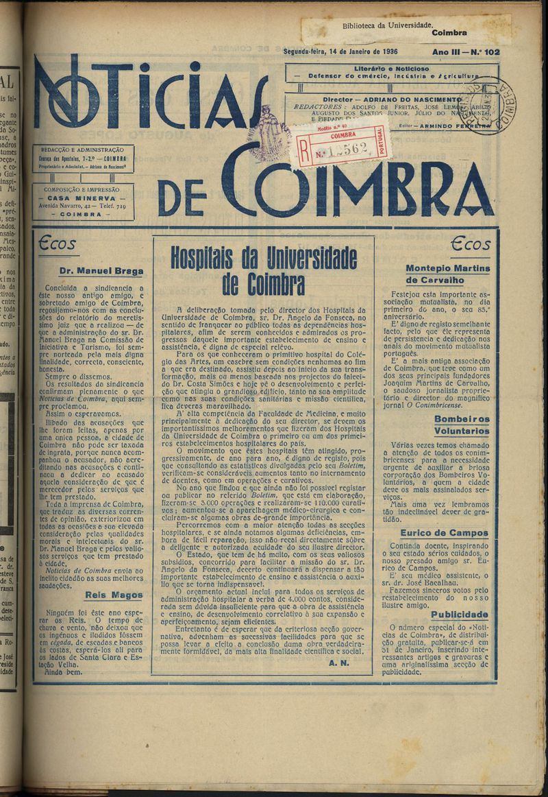 Notícias de Coimbra : semanário noticioso, literário e de crítica