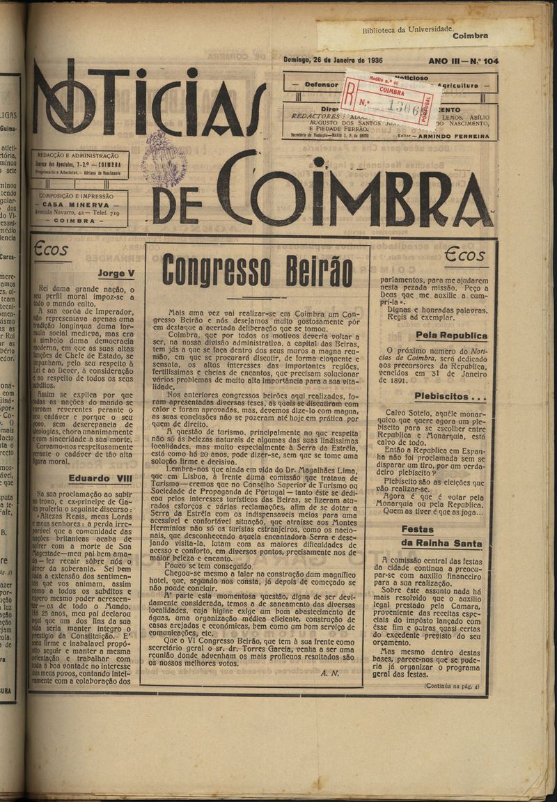 Notícias de Coimbra : semanário noticioso, literário e de crítica