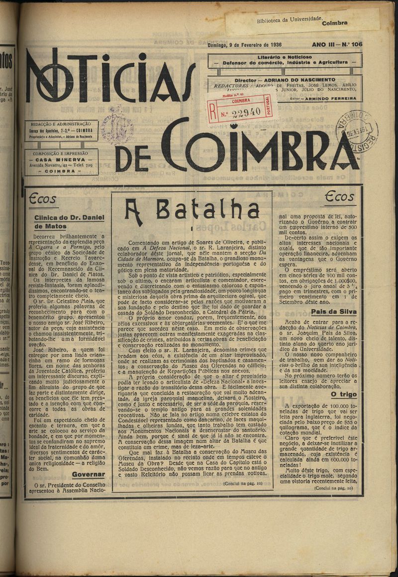 Notícias de Coimbra : semanário noticioso, literário e de crítica
