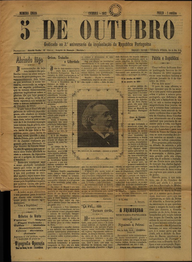 5 de Outubro : dedicado ao 2º aniversário da implantação da República Portuguesa