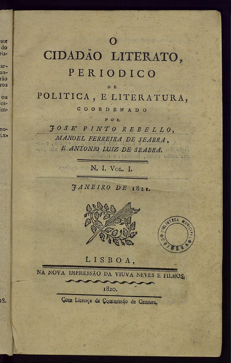 O cidadão literato : periódico de politica e literatura - Vol. 1, nº 1 (Jan. 1821)