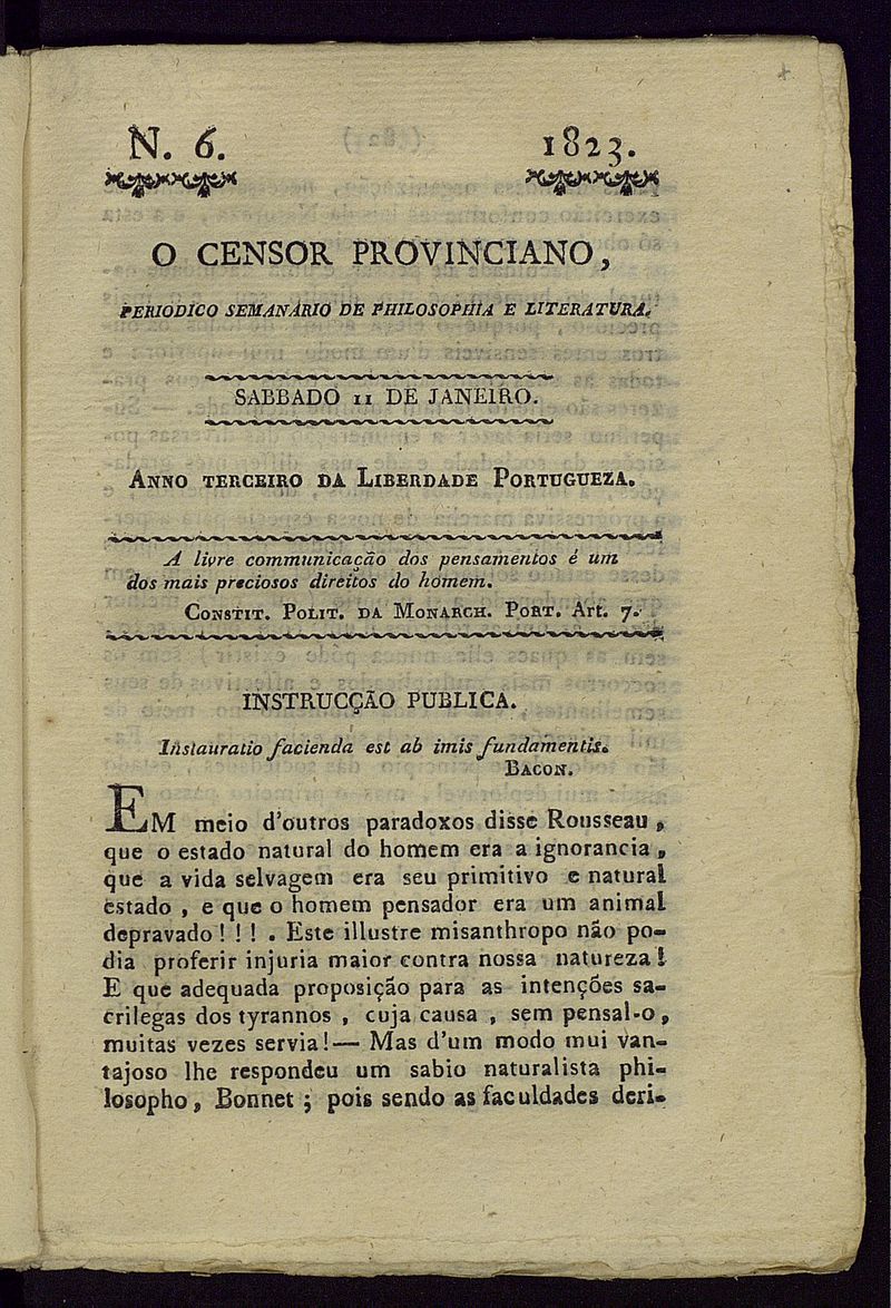 Censor provinciano : periodico semanario de philosophia, politica e literatura - Nº 6