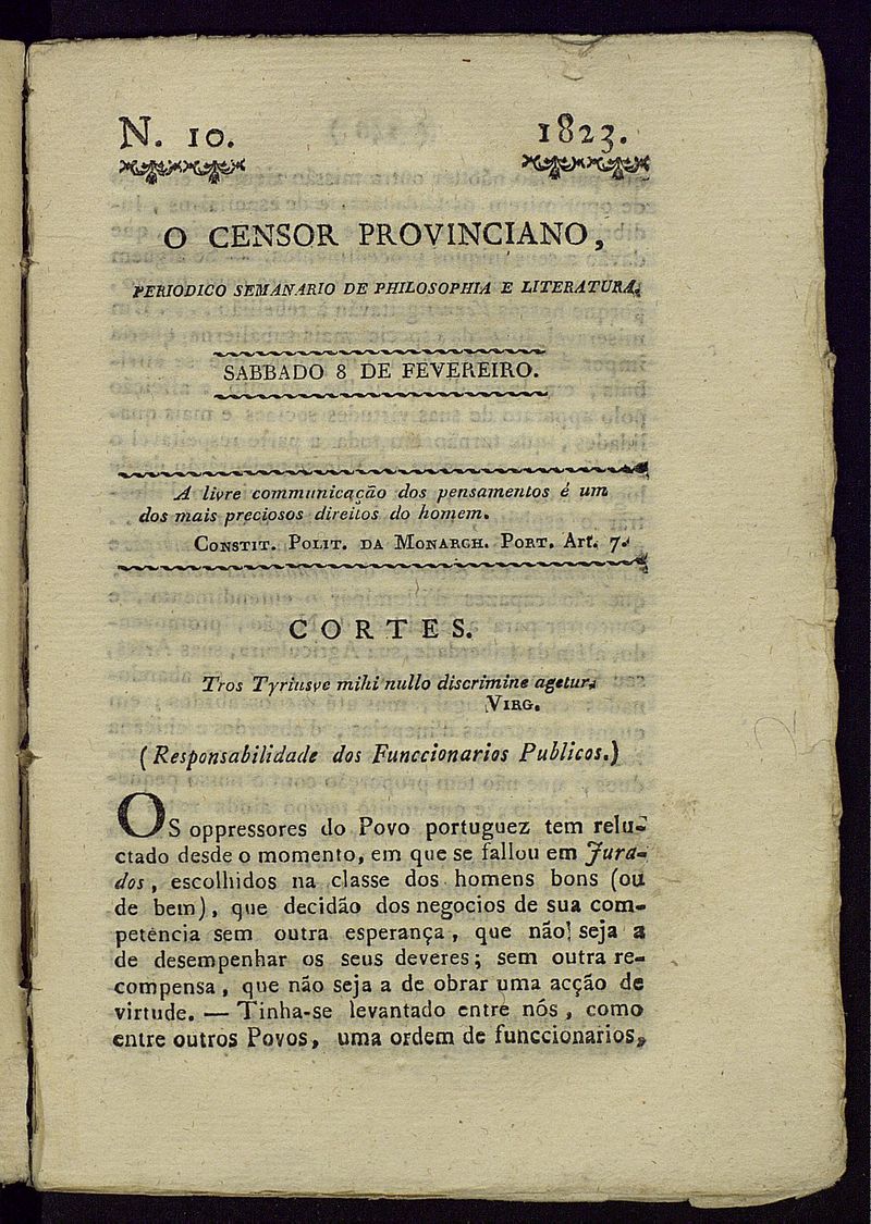 Censor provinciano : periodico semanario de philosophia, politica e literatura - Nº 10