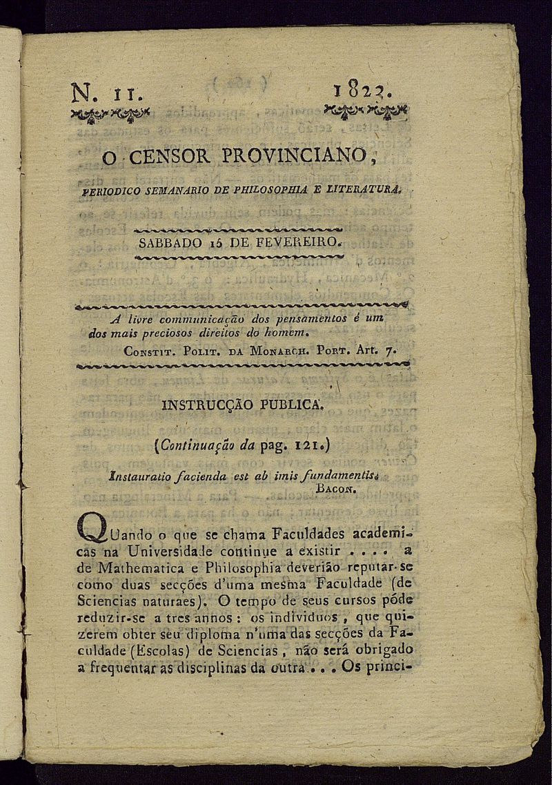 Censor provinciano : periodico semanario de philosophia, politica e literatura - Nº 11