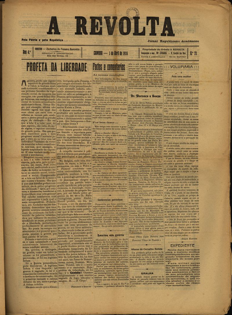 A revolta : semanário republicano académico