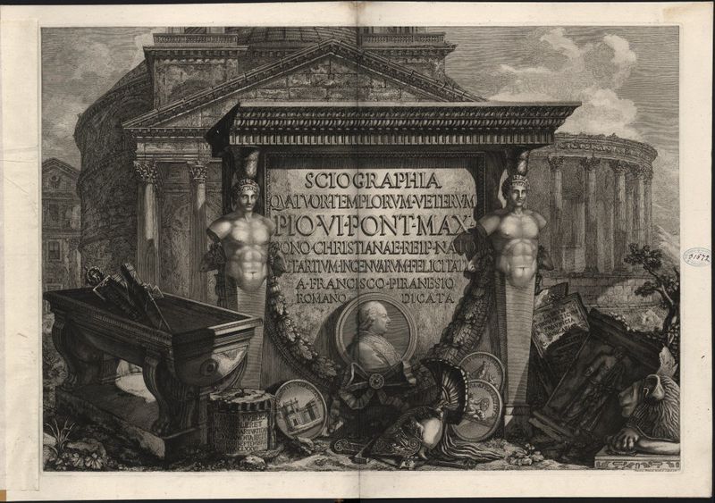 Contém: Prima parte che comprende i tempj di Vesta Madre, Ossia della Terra, e della Sibilla, ambedue in Tivoli, e dell' Onore, e della Virtù fuori di porta Capena. - Seconda parte de' tempj antichi che contiene il celebre panteon pubblicata dal cavalie
