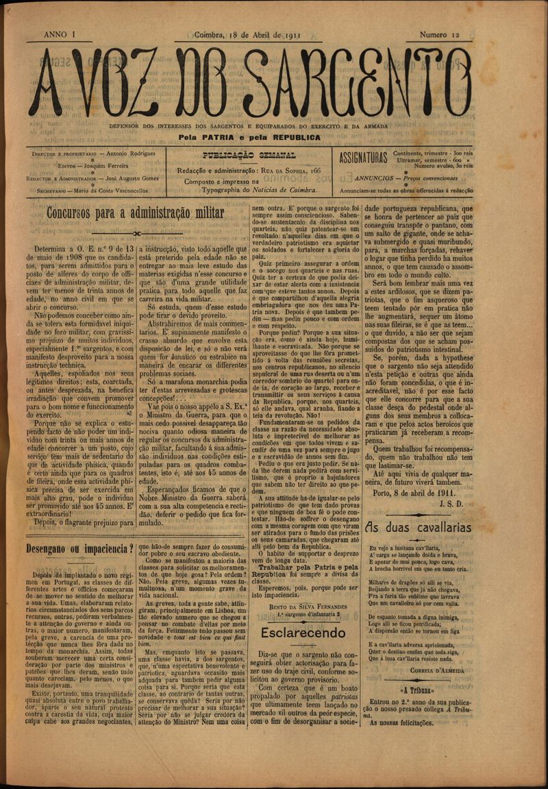 A voz do sargento : defensor dos interesses dos sargentos e equiparados do exército e armada - Nº12