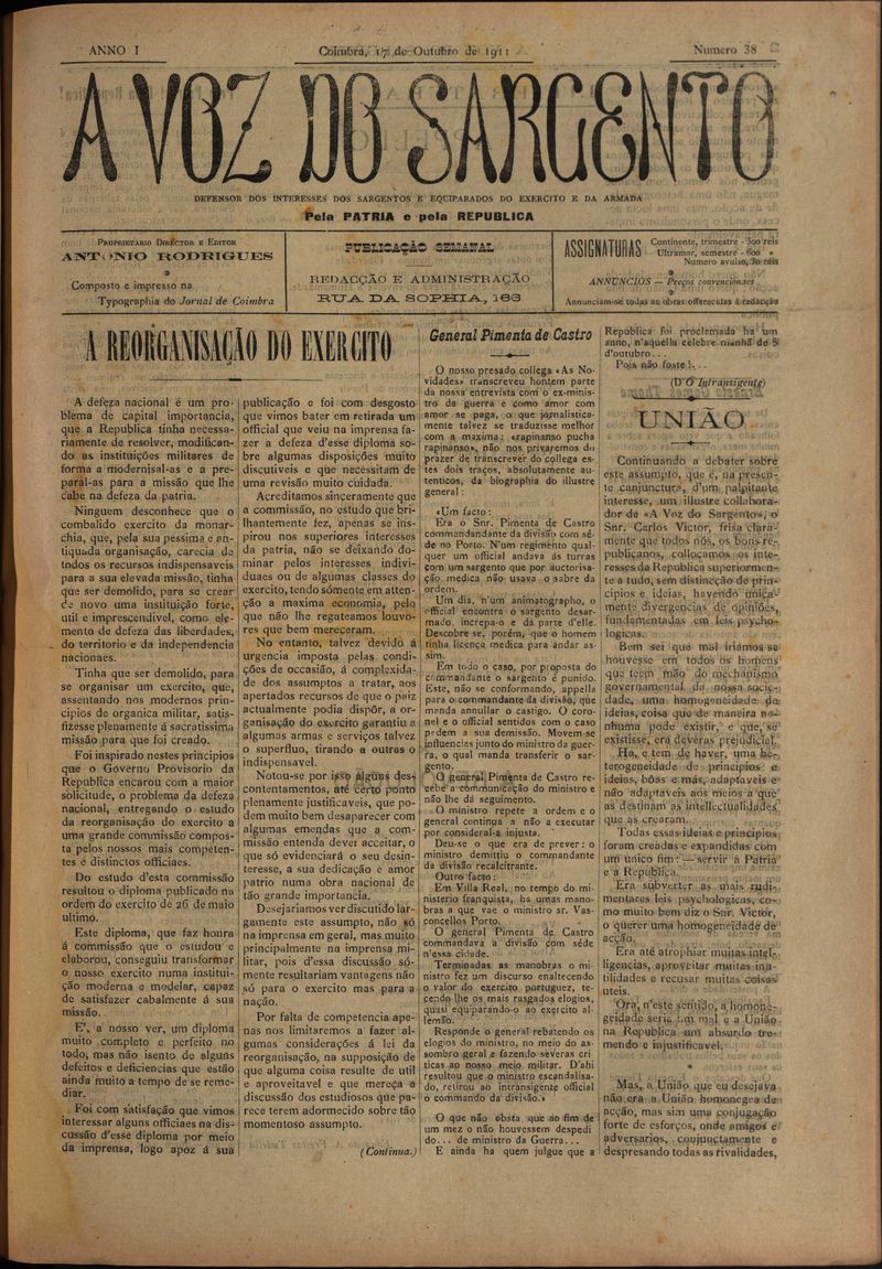 A voz do sargento : defensor dos interesses dos sargentos e equiparados do exército e armada - Nº38
