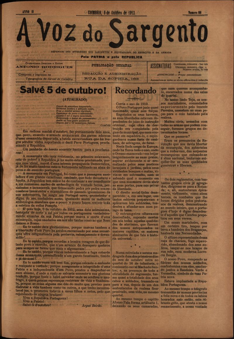 A voz do sargento : defensor dos interesses dos sargentos e equiparados do exército e armada - Nº88