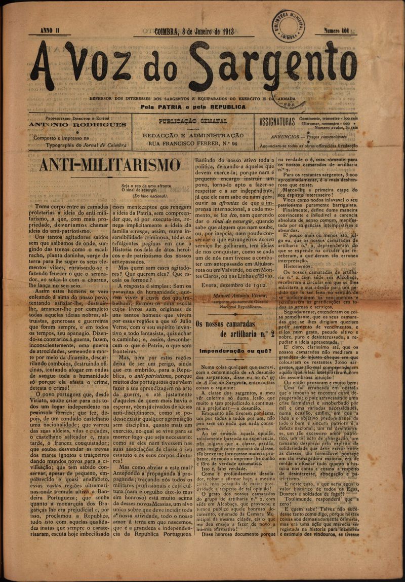A voz do sargento : defensor dos interesses dos sargentos e equiparados do exército e armada - Nº101