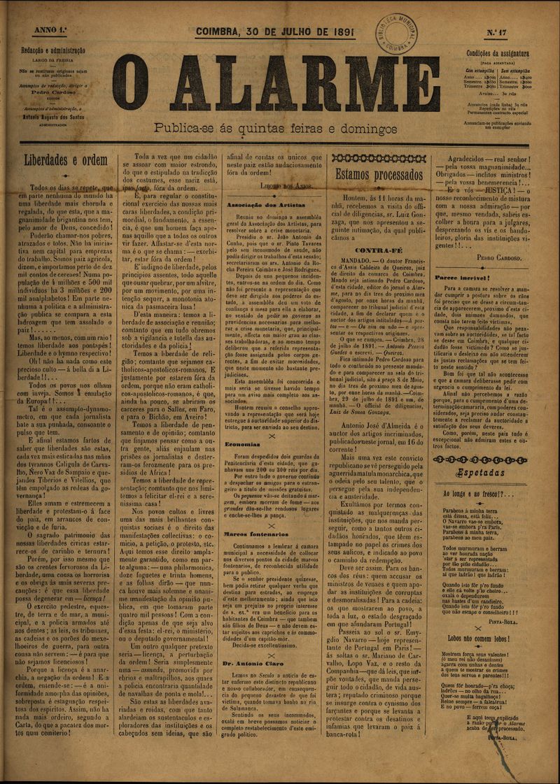 O alarme - 1891, Julho 30, quinta-feira - Nº17