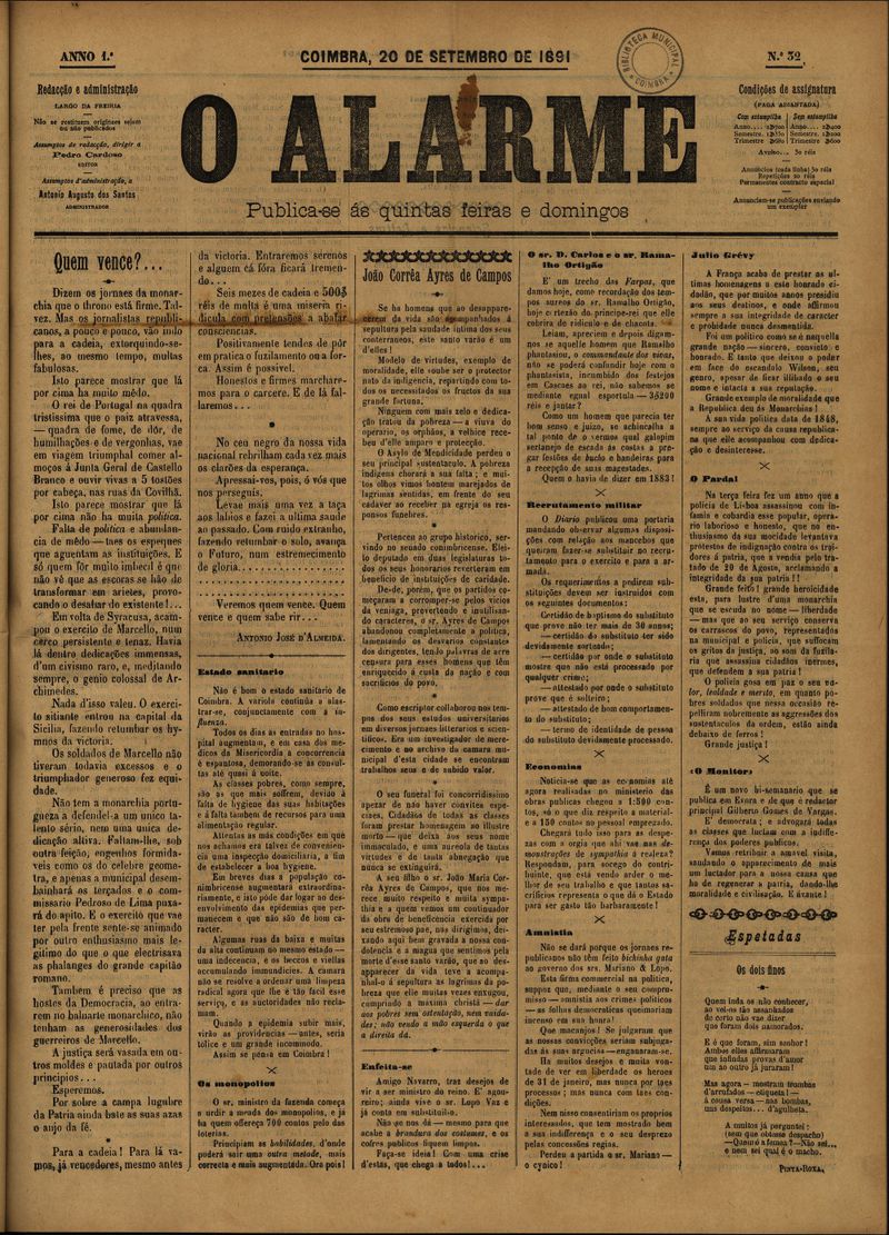 O alarme - 1891, Setembro 20, domingo - Nº32