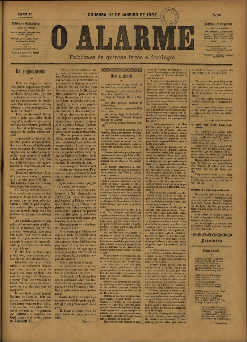 O alarme - 1892, Janeiro 21, quinta-feira - Nº67