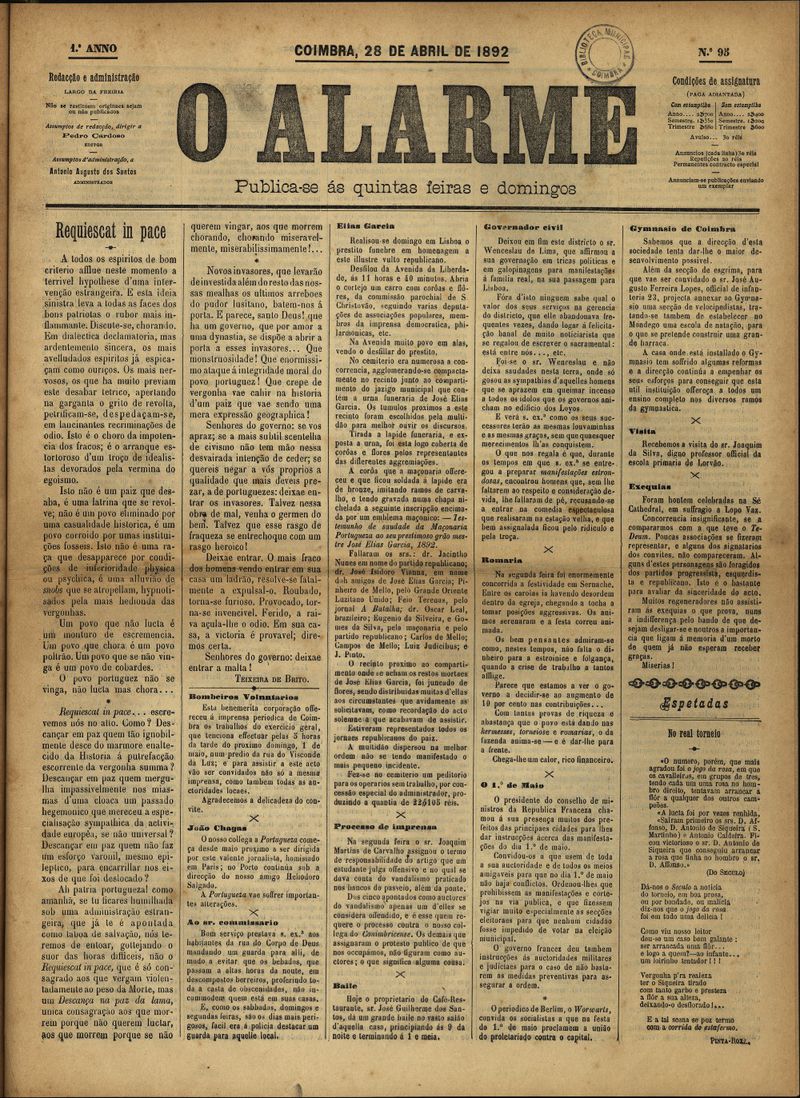 O alarme - 1892, Abril 28, quinta-feira - Nº95