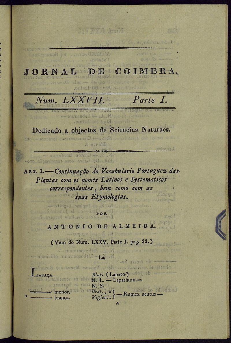 Jornal de Coimbra Vol. 14, nº 77, pt. 1