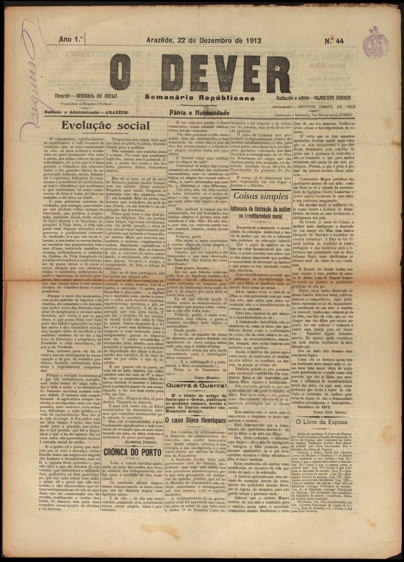 O dever : semanário republicano 1912-12-22
