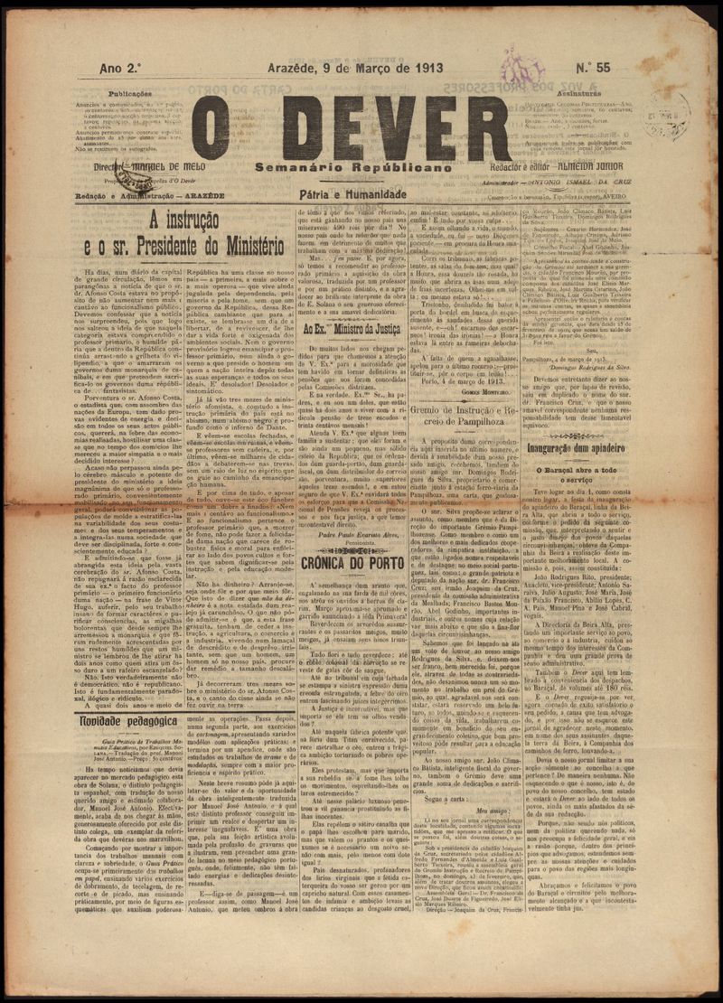 O dever : semanário republicano 1913-03-09