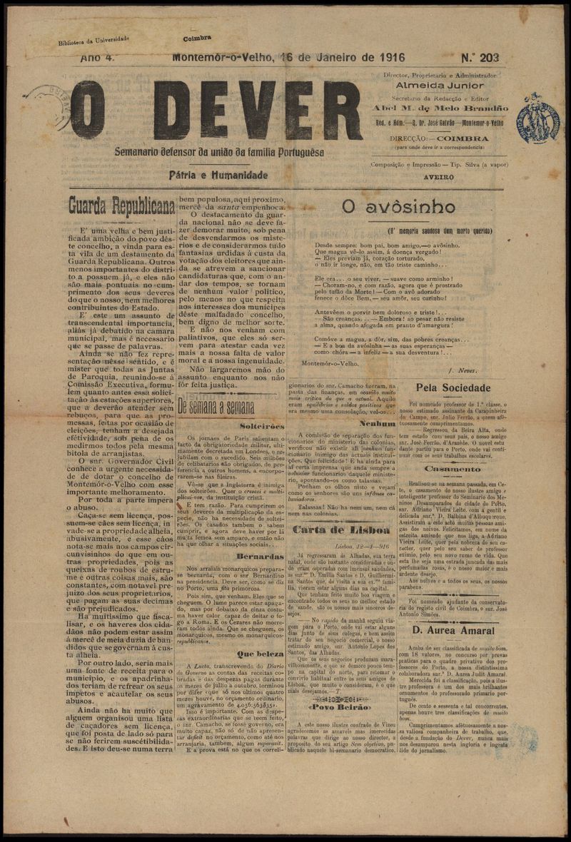 O dever : semanário republicano 1916-01-16