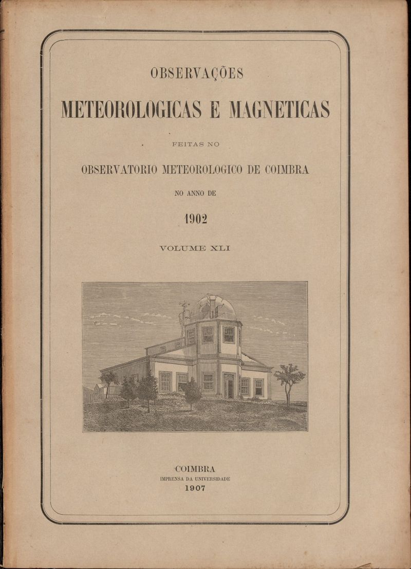 Observações meteorológicas e magnéticas feitas no Observatório Meteorológico e Magnético da Universidade de Coimbra - 1902