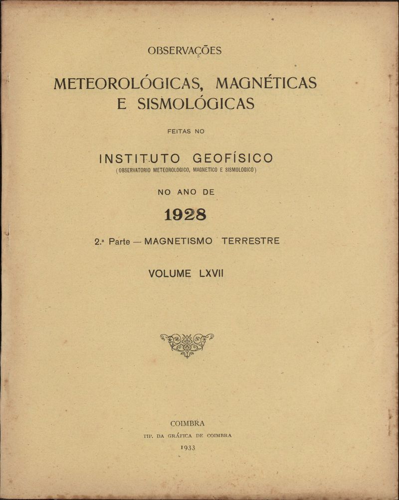 Observações meteorológicas, magnéticas e sismológicas feitas no Observatório Meteorológico e Magnético de Coimbra - 1928-2