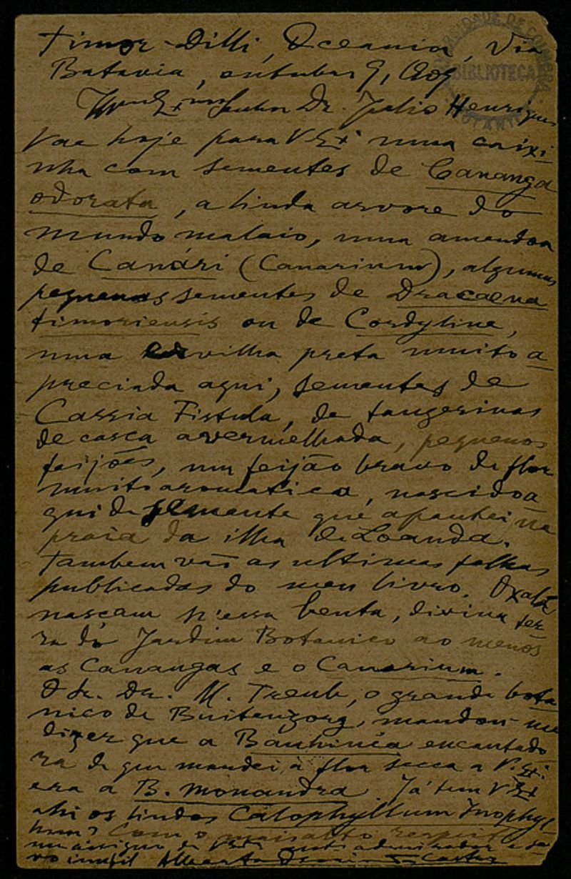 Bilhete Postal, 1909 Out. 9, Dilli, a Dr. Júlio Henriques, Coimbra