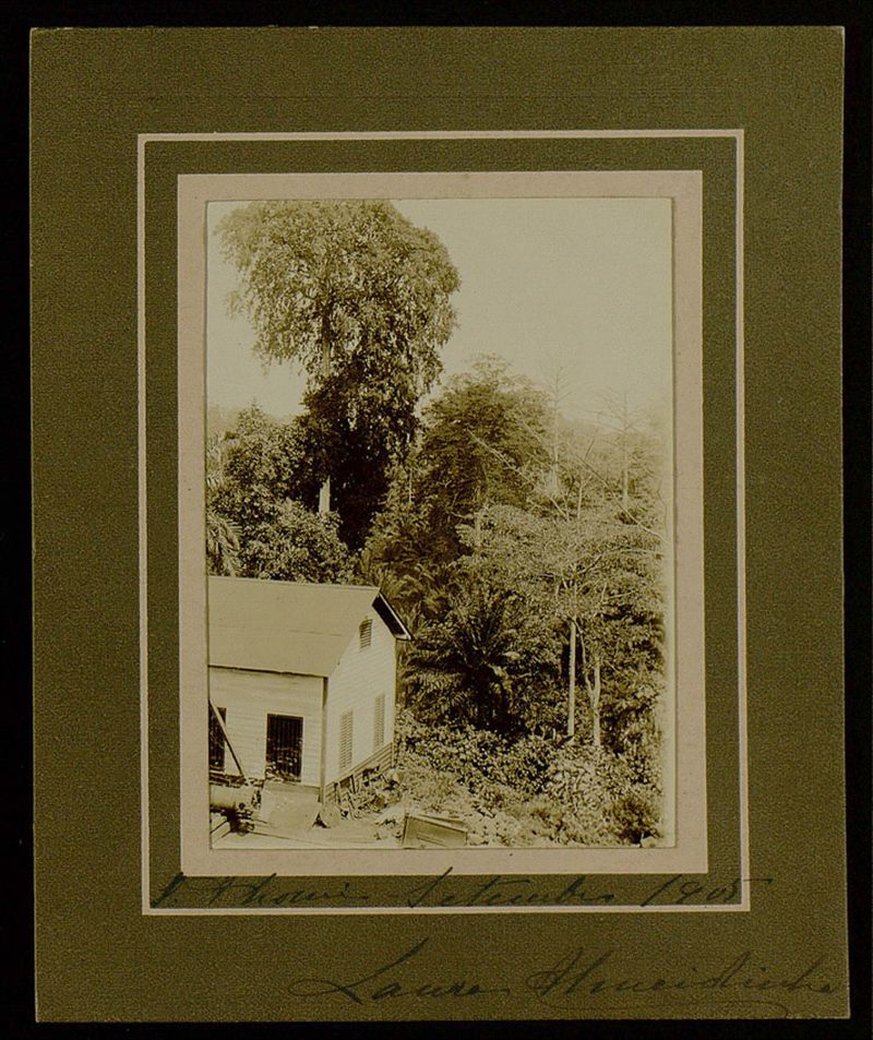 Nota ms. sobre a orla da fot.: "S. Thomé - Setembro 1905 - Laura Almeidinha". - Nota ms. no verso: "Pau capitC#o na Roça do Rio do Ouro".