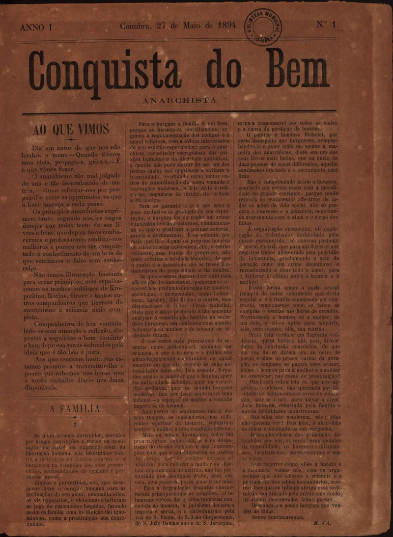 Conquista do bem : anarchista – Nº1