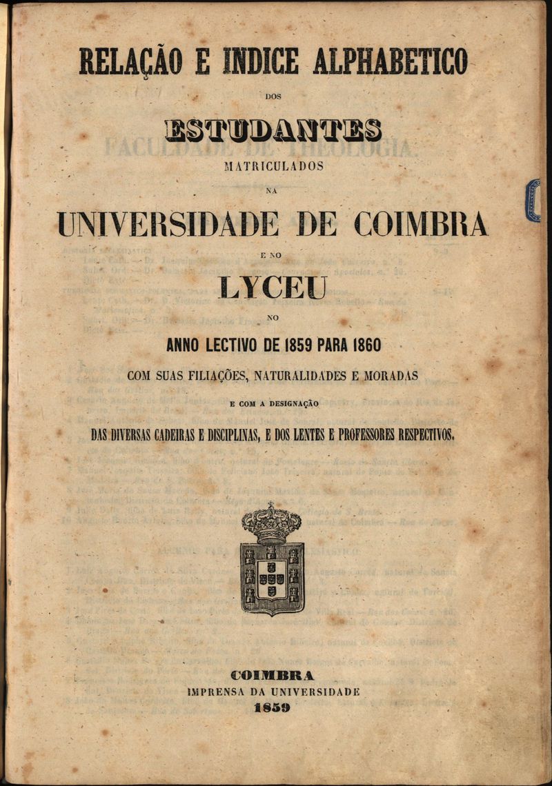 Relação e índice alfabético dos estudantes matriculados na Universidade de Coimbra e no Liceu