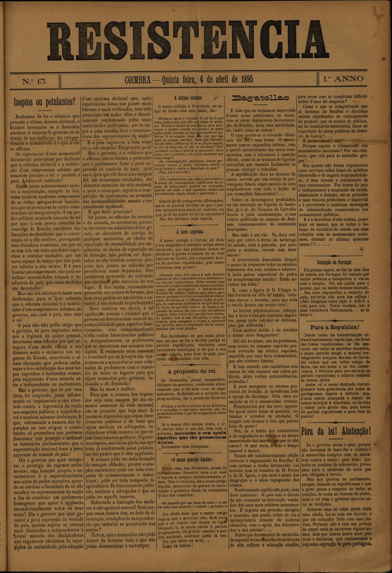 Resistência : orgão do Partido Republicano de Coimbra