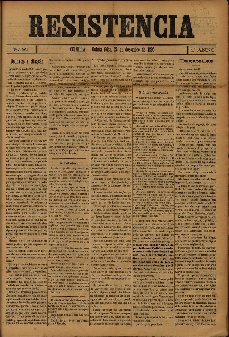 Resistência : orgão do Partido Republicano de Coimbra