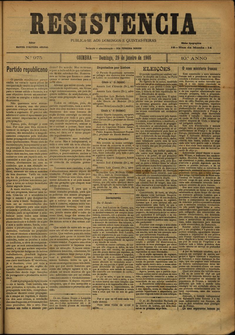 Resistência : orgão do Partido Republicano de Coimbra