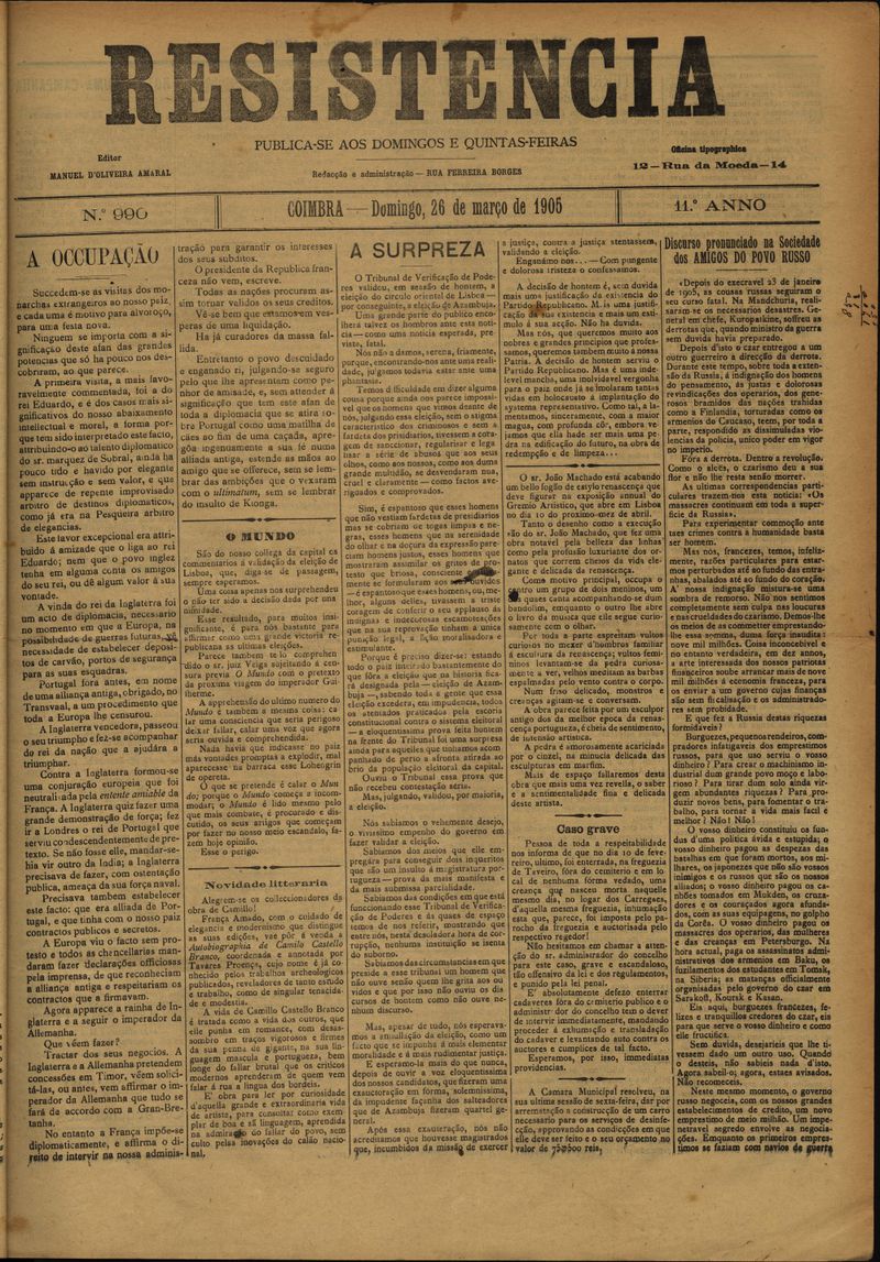 Resistência : orgão do Partido Republicano de Coimbra