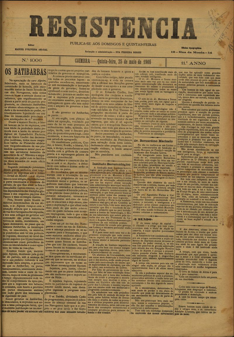 Resistência : orgão do Partido Republicano de Coimbra