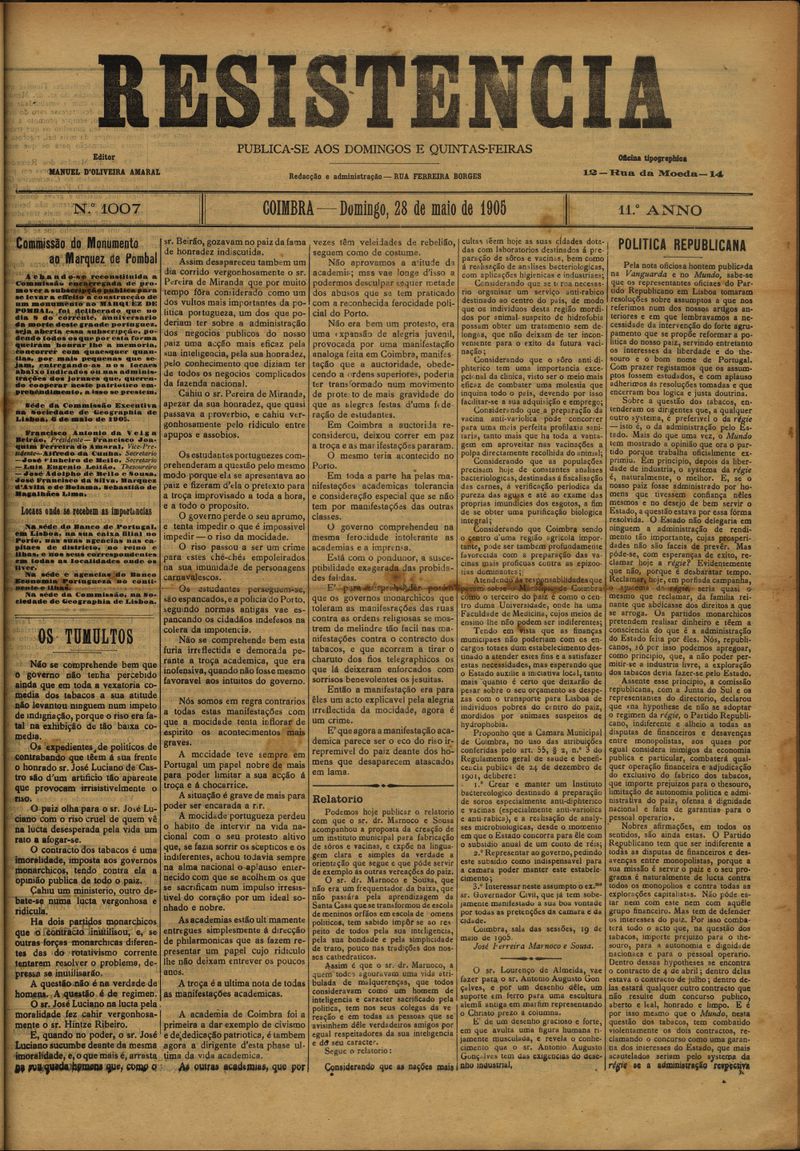 Resistência : orgão do Partido Republicano de Coimbra