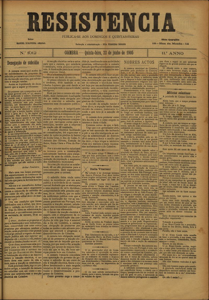 Resistência : orgão do Partido Republicano de Coimbra