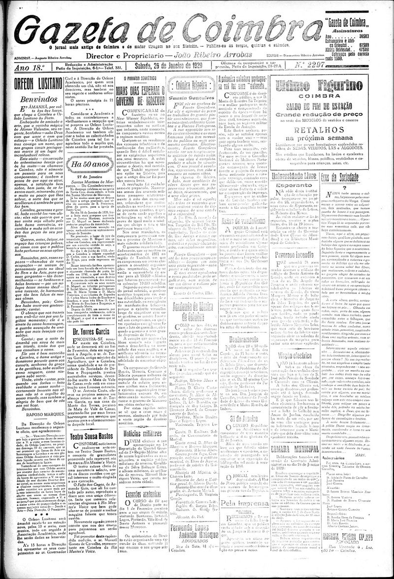 Gazeta de Coimbra 1929, Janeiro 26, sábado - Nº2297