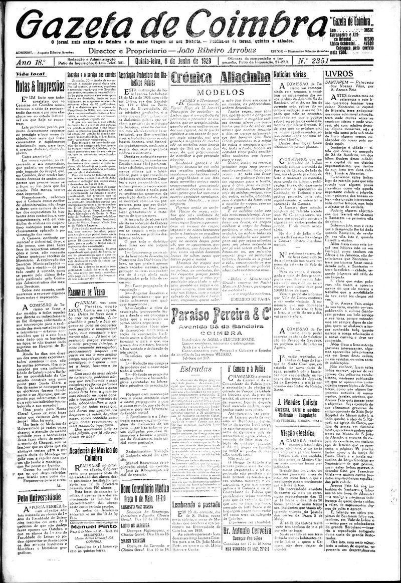 Gazeta de Coimbra 1929, Junho 06, quinta-feira - Nº2351